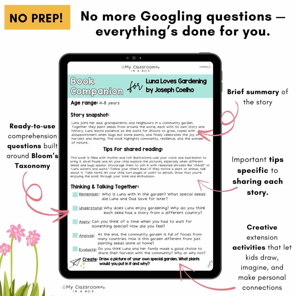 • Ready-to-use comprehension built around Bloom’s Taxonomy — age-appropriate, open-ended and teacher-trusted.